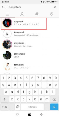 2. Then look for an Instagram account named @sonystark