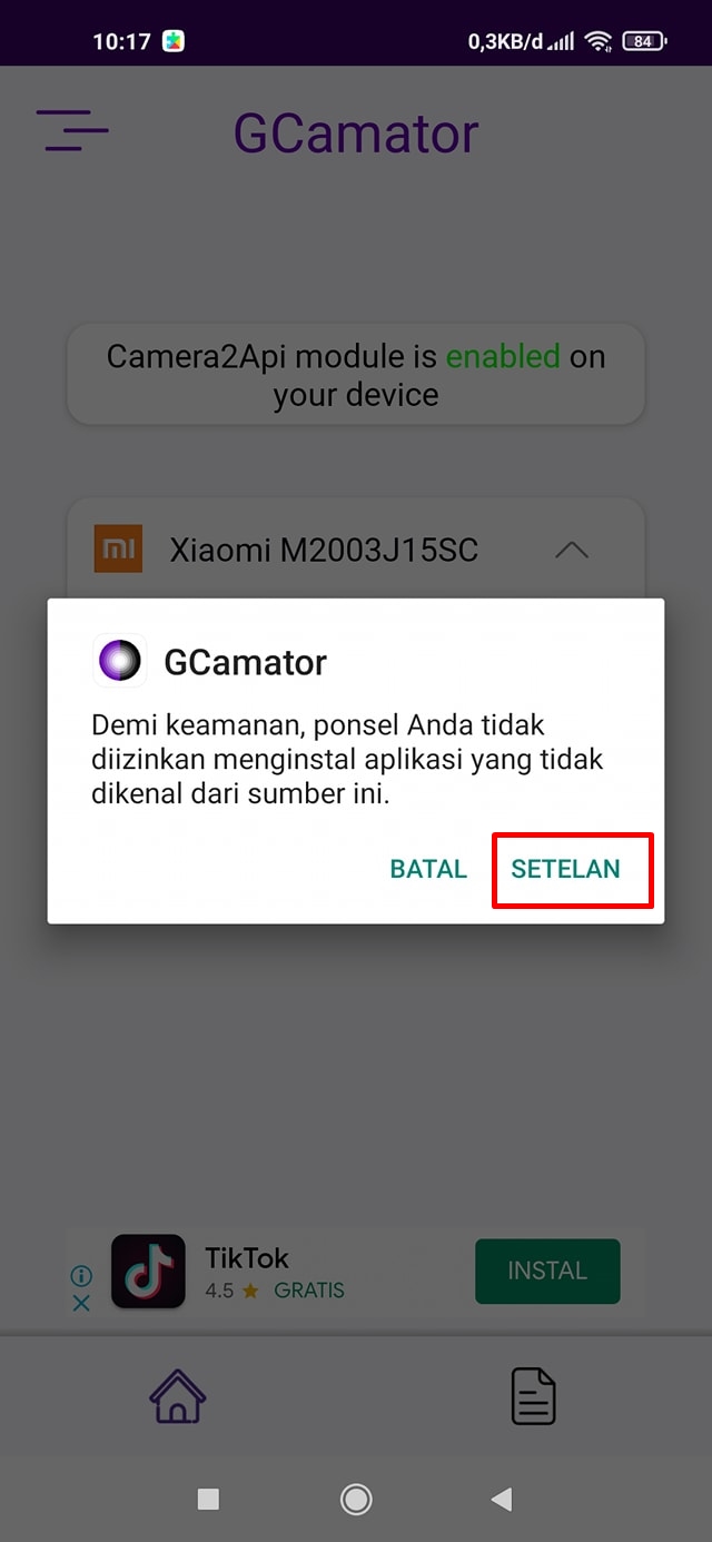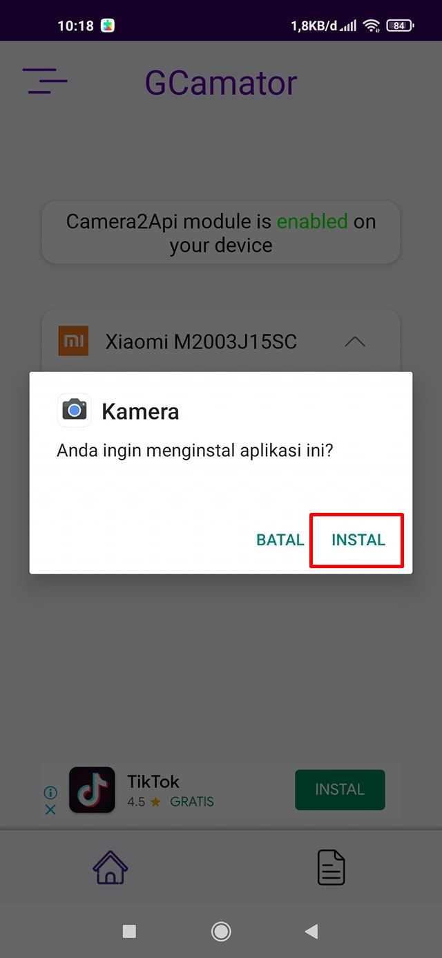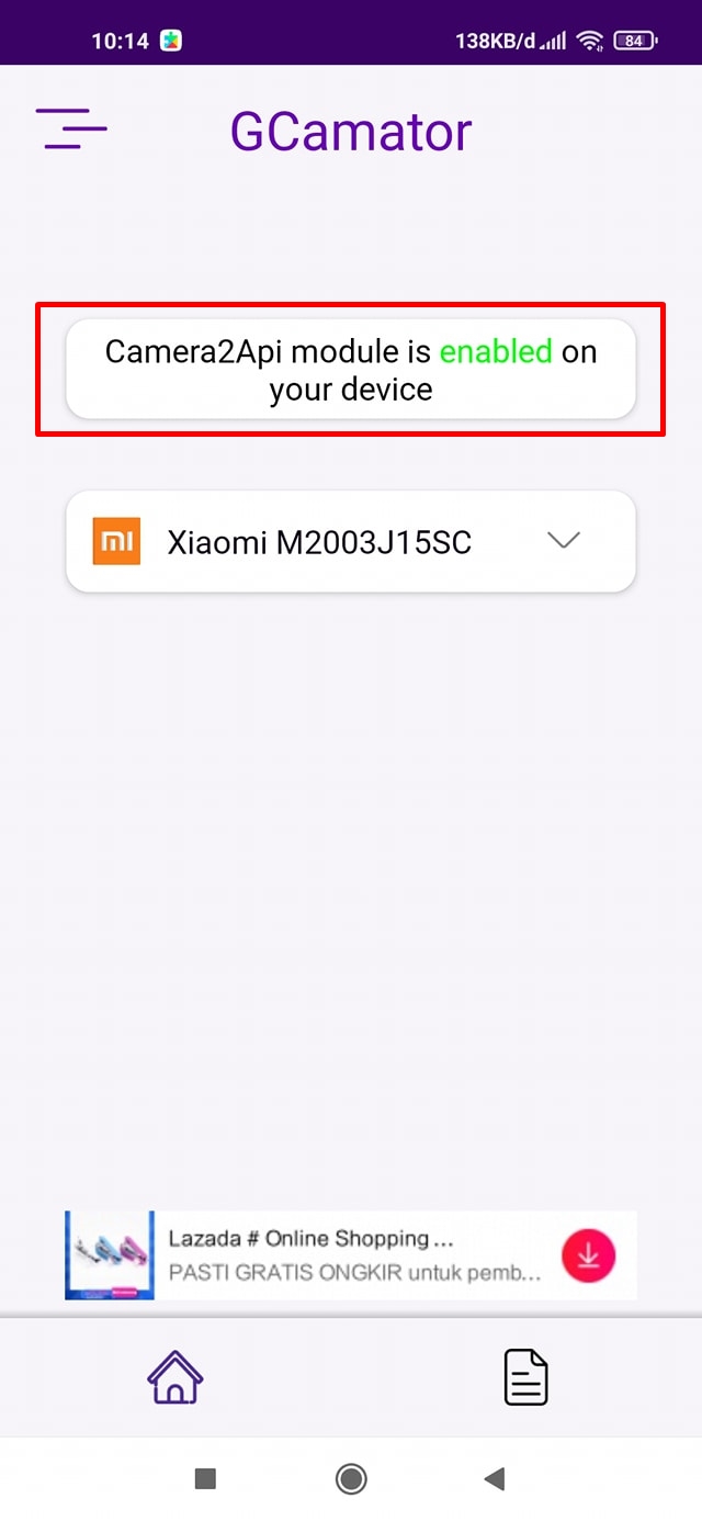 Step 2. After that open the GCamator app. When you first open the GCamator app, the app will check whether camera2api is active or not on your phone, if it is enabled, it means it is active.