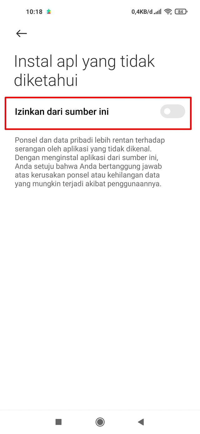 Step 6. Tap Settings to allow the phone to install apps from unknown sources.