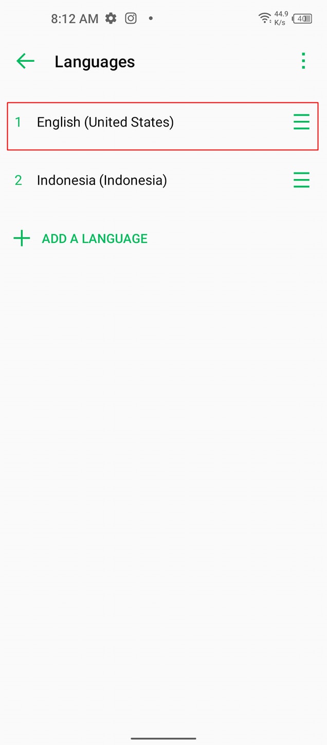 - Make sure the English is at the top, just drag the 3 lines on the right to the top in the English section