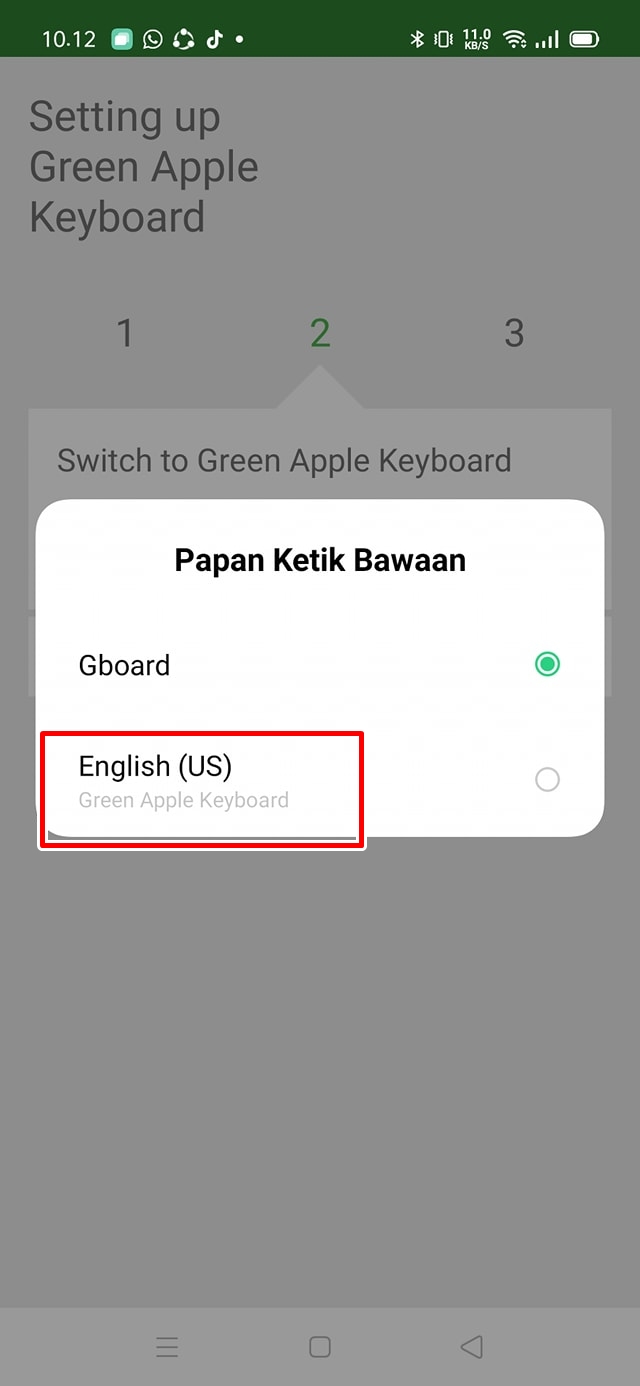 4. Select Green Apple Keyboard.