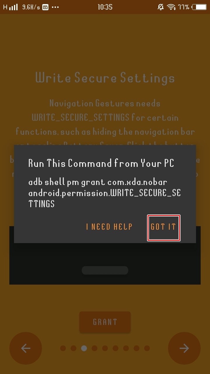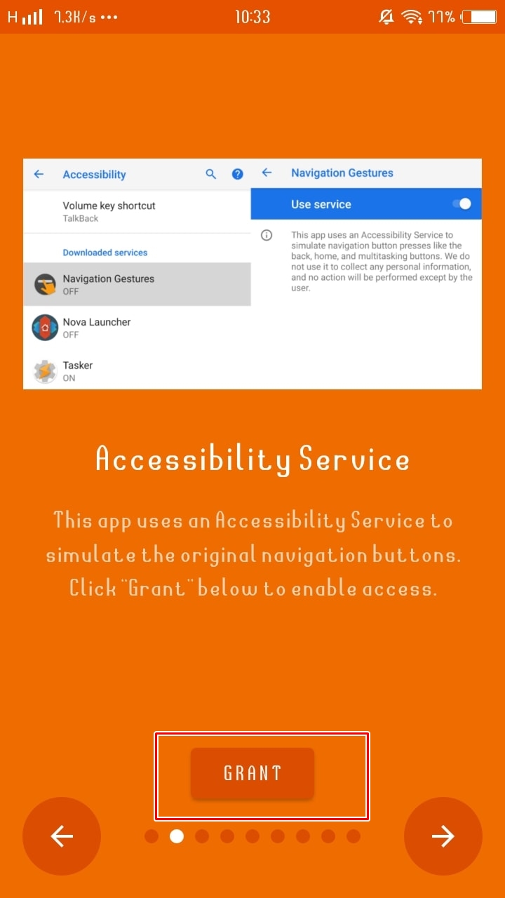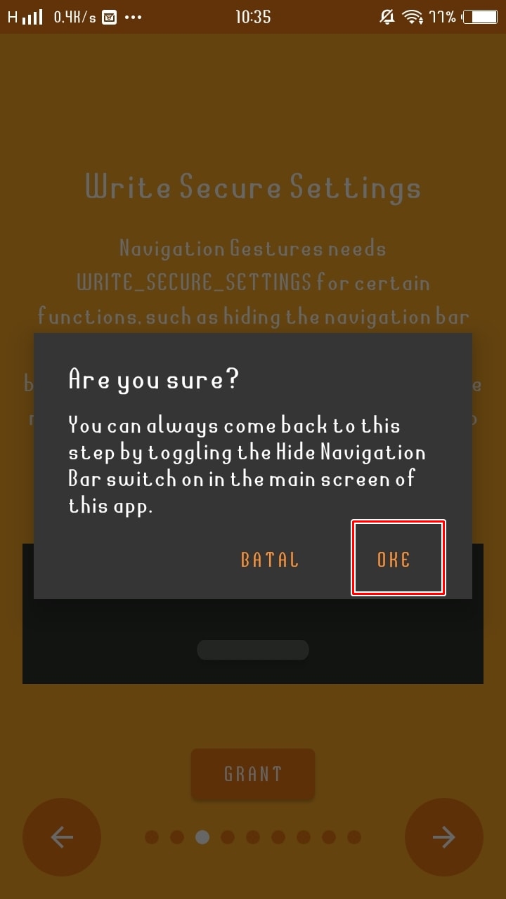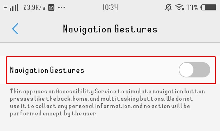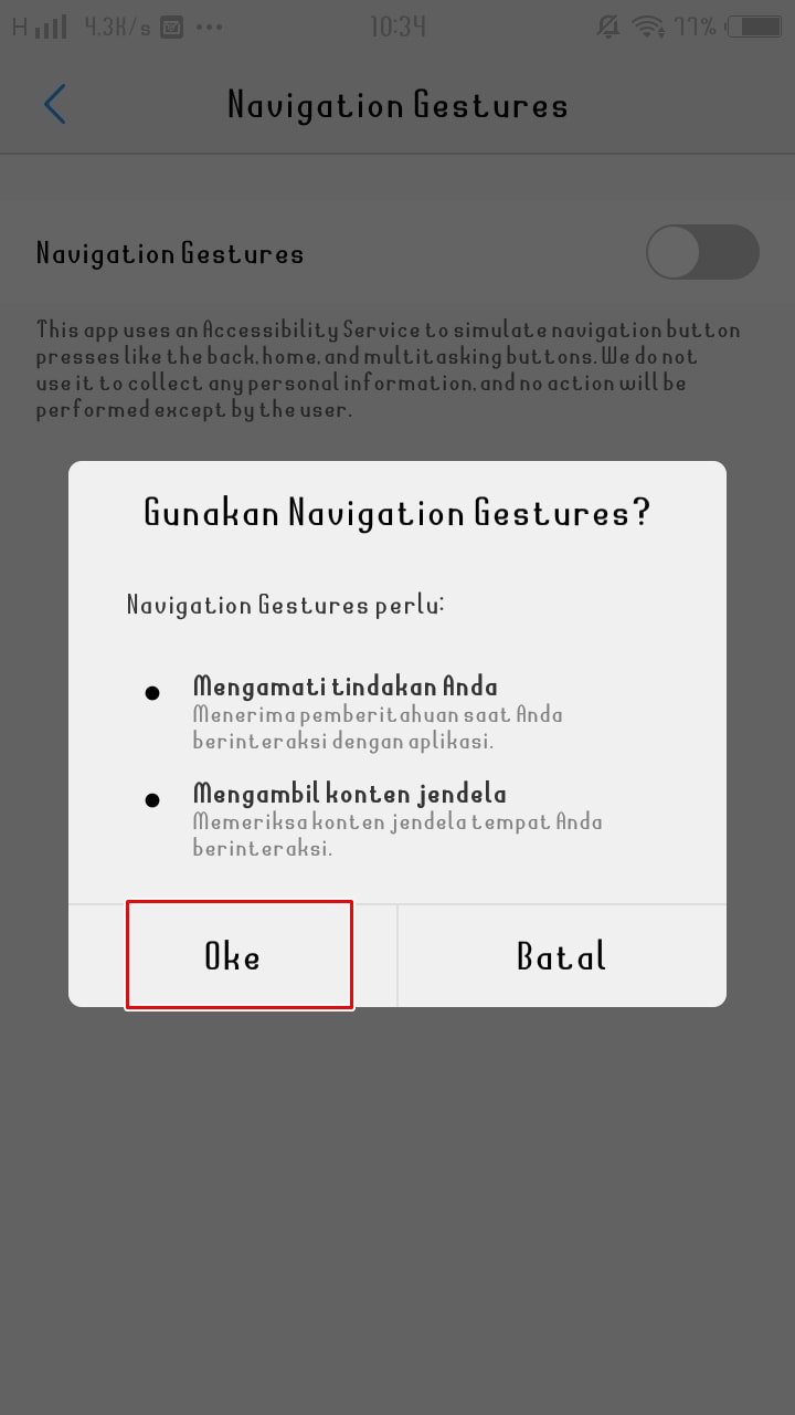 4. Select navigation gesture then activate navigation gesture, tap OK