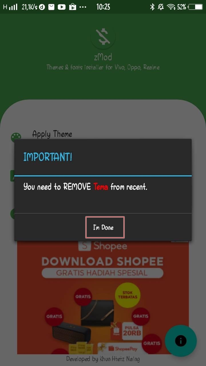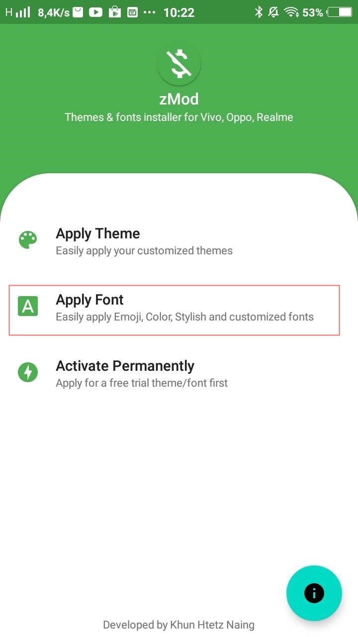 - After that open the ZMod app and tap Apply Font.
