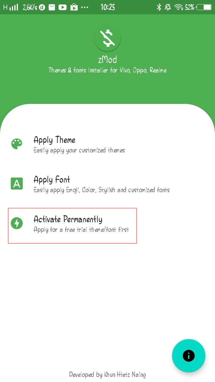 - Next go to zmod app and tap Activate Permanently.