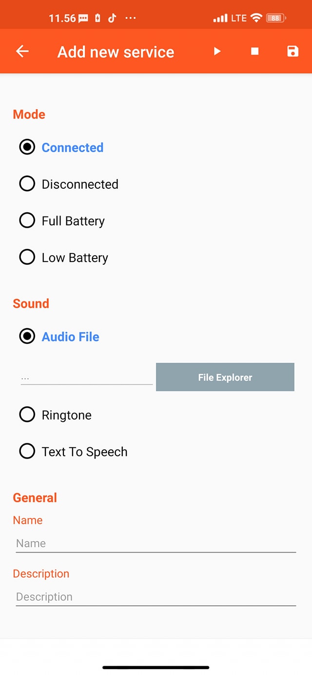 - Full Battery: used to change the battery sound notification when the battery is full