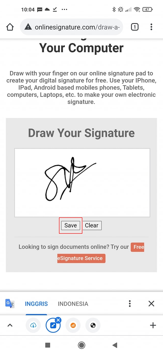 1. Please open the site https://onlinesignature.com/ on PC or on Android.
