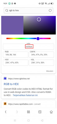 1. Please go to Google.com and search for rgb to hex.