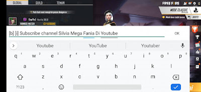 Now for those of you who want to look different when sending chats in the Free Fire game, you can change the text for your chat to be cooler and more colorful so that your friends will be more interested in reading your chats in global or private chats.