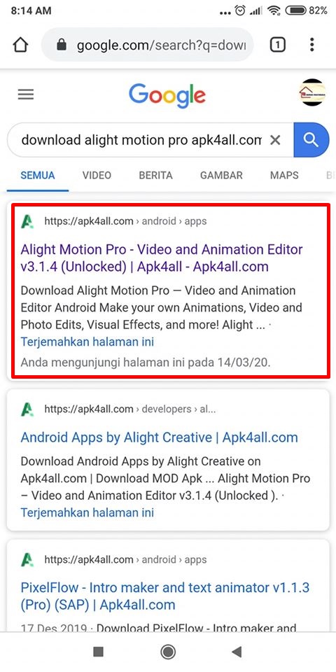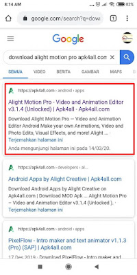 3. There, please type the keyword “download alight motion pro apk4all.com”