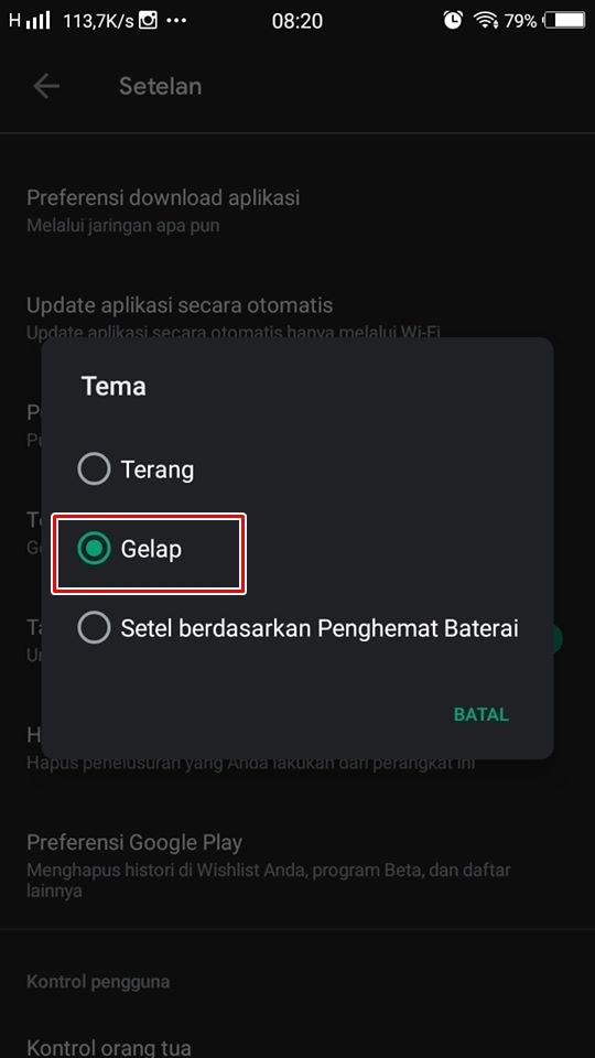This dark mode does function to reduce the intensity of eye strain when exposed to direct light from our smartphones. In addition, dark mode / dark mode will also be able to reduce headaches when using our smartphones. That’s why now a lot of apps are launching the dark mode / dark mode feature. And to activate dark mode / dark mode on Play Store, please see more below