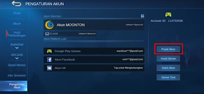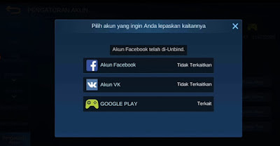 In the Mobile Legends game we are obliged to bind our game account to social media, there are several social media that you can use to bind your account, namely Facebook, Google Play Game account, vk account and Moonton account. When you bind your account to the social media, the status is safe, and you can change accounts freely without fearing that your account will be lost. In addition you can also unbind your account if needed, for example when you are about to change your social media account with your new social media account, or when you want to sell your Mobile Legends game account, you can unbind your game account from social media.