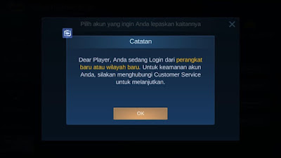 If there is a description as below, please see the solution in my previous article How to Overcome You Login From a New Device / Region in Mobile Legends