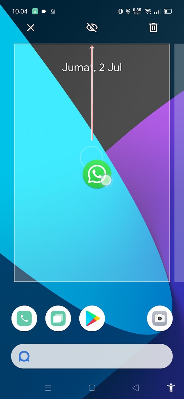 3. To hide the app, you can long tap on the app icon and then drag the app icon to the eye icon. Then the app will automatically disappear from your mobile screen and is hidden.