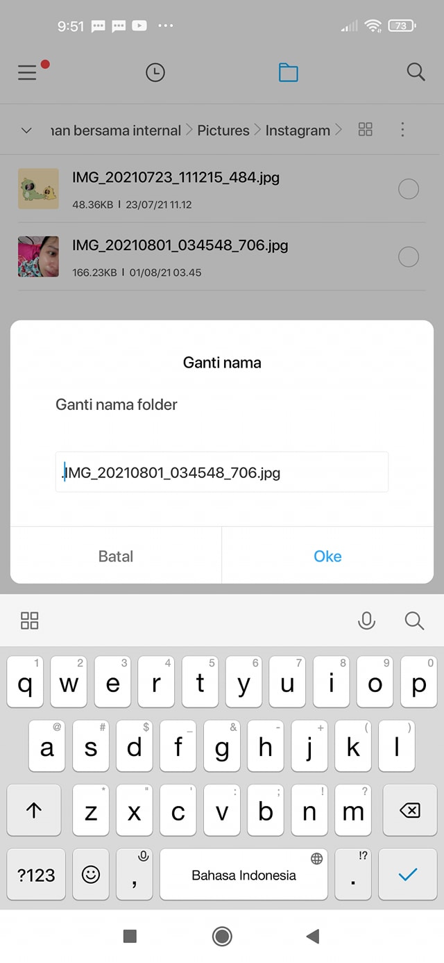 3. After that, rename / rename by adding a period (.) in front of the file names of the photos and videos.