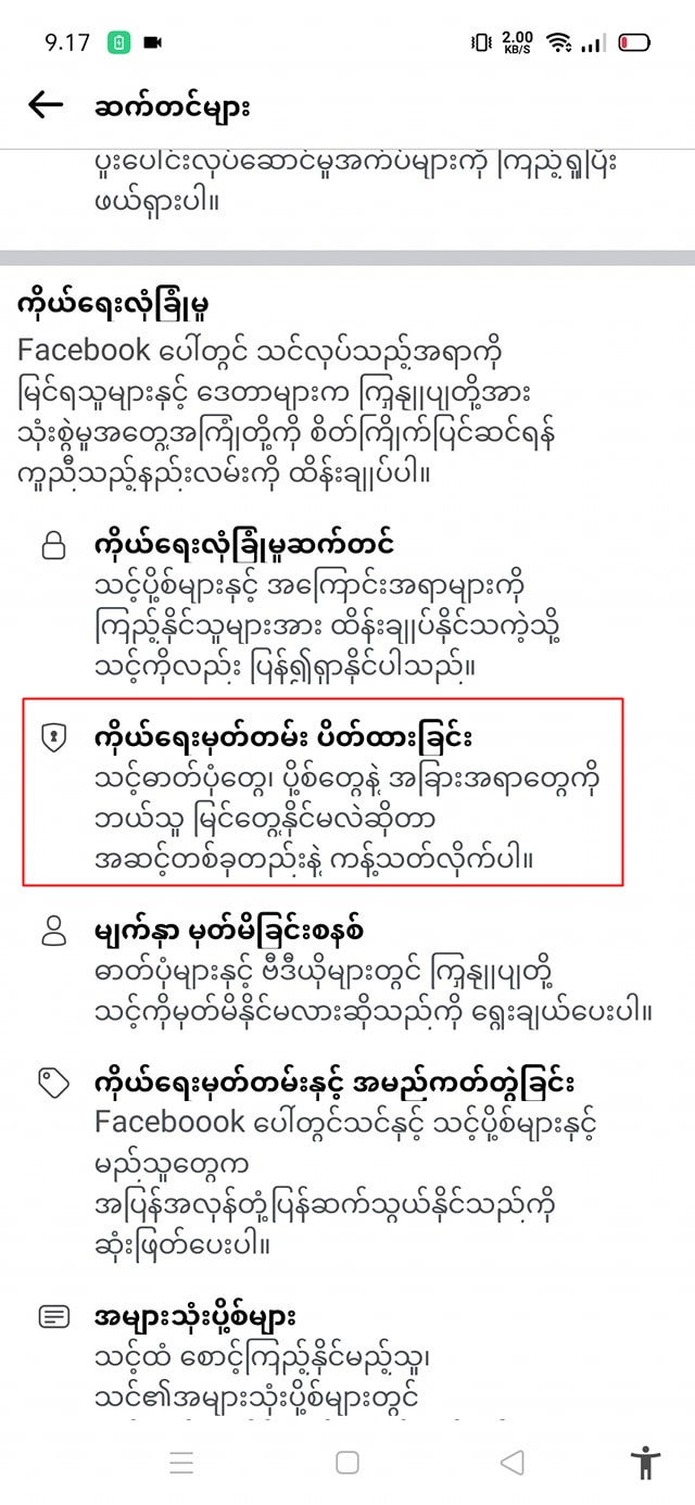 7. Scroll down and tap this option which is symbolized by the shield icon.