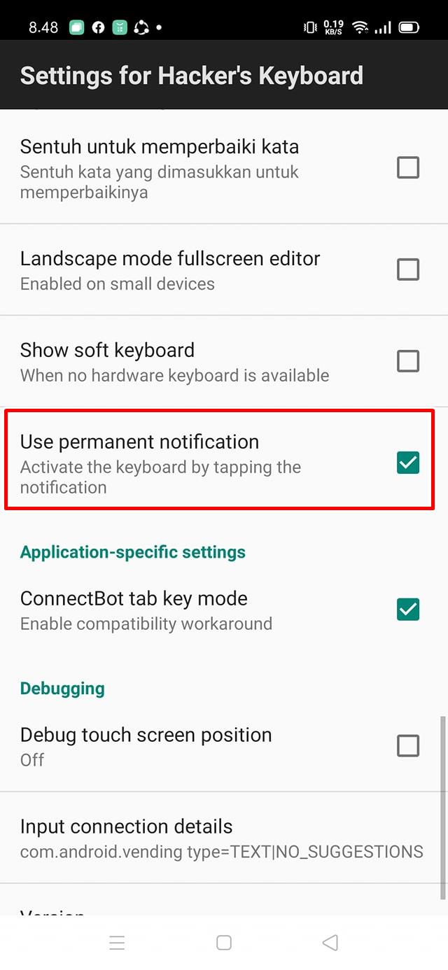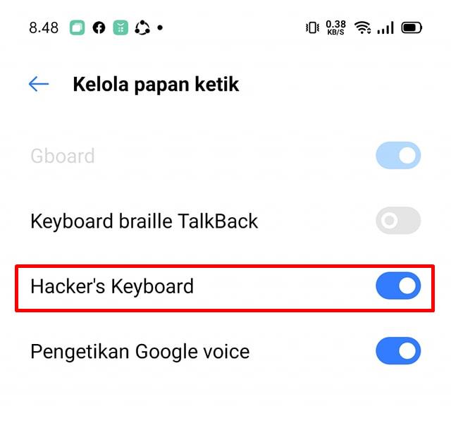 Tap in the Enable Keyboard section – Enable it in the Hacker’s Keyboard section.